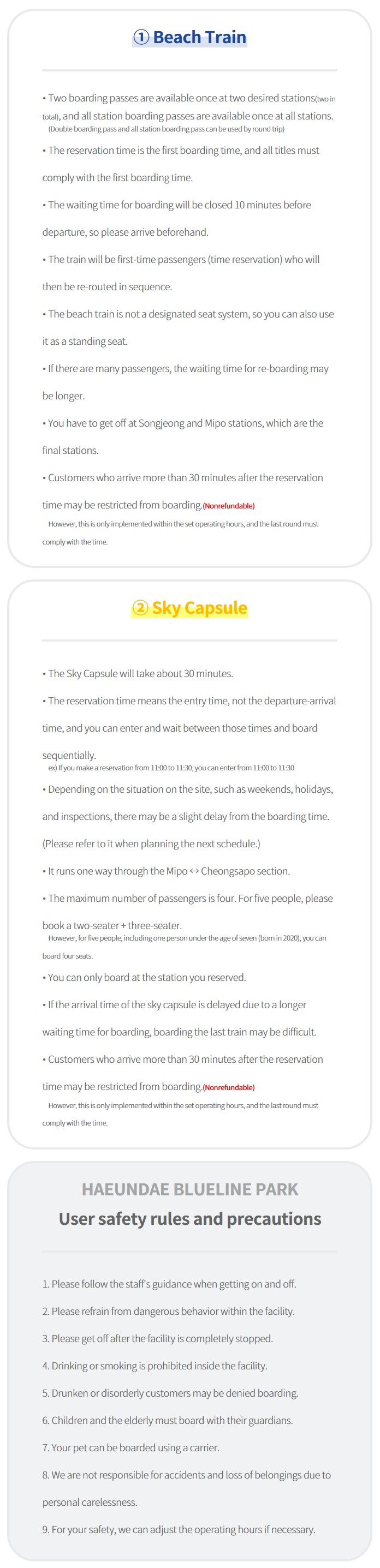• Customers who arrive more than 30 minutes after the reservation time may be restricted from boarding.(Nonrefundable)