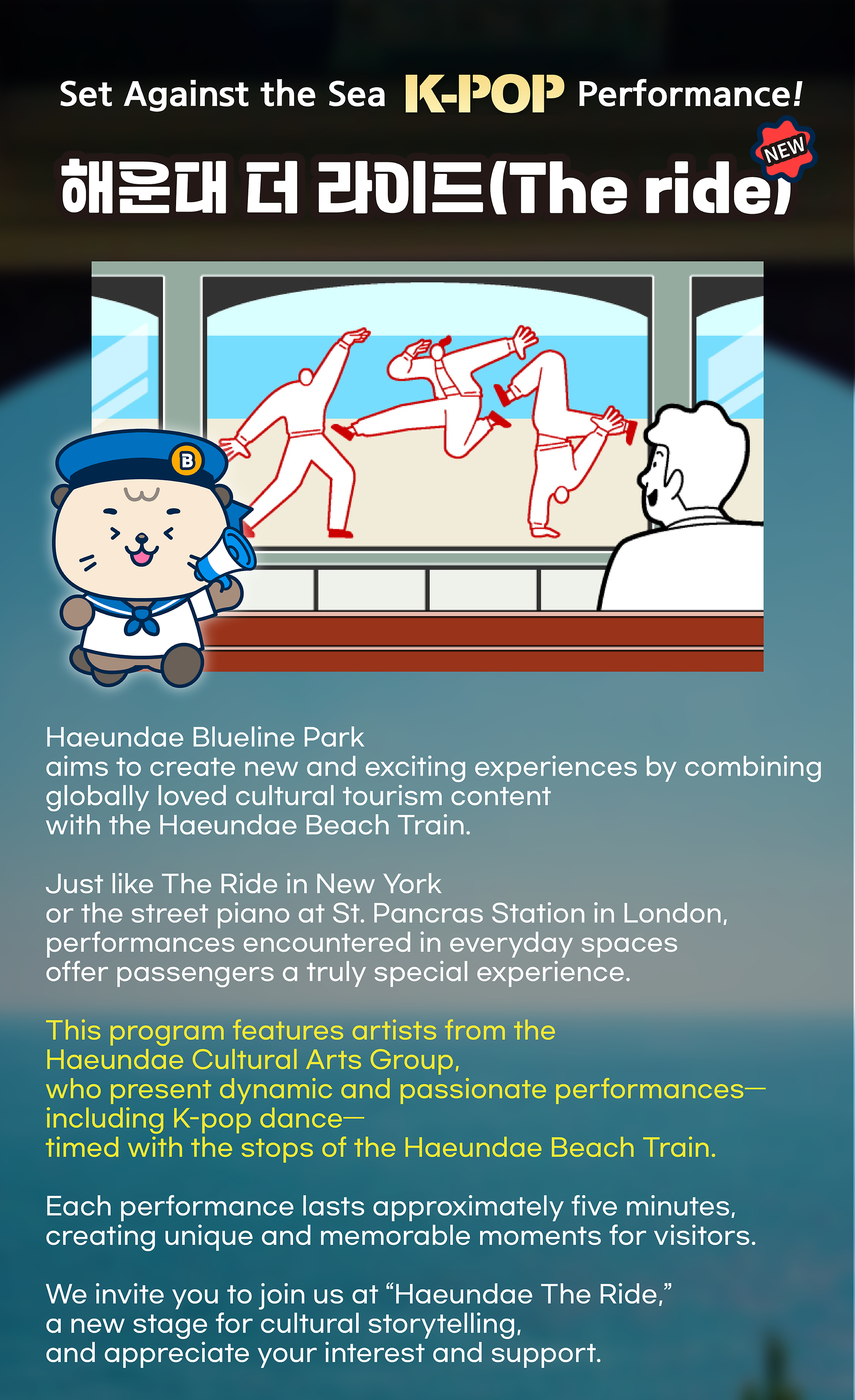 The performance can be enjoyed from inside the Haeundae Beach Train.